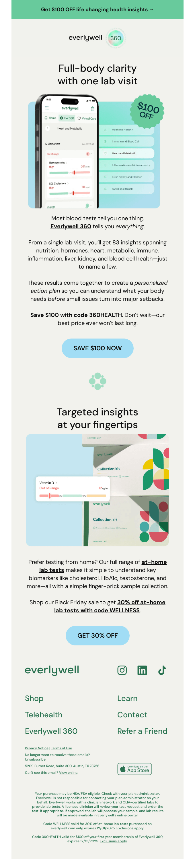 Everlywell: $100 OFF Everlywell 360—our best offer yet