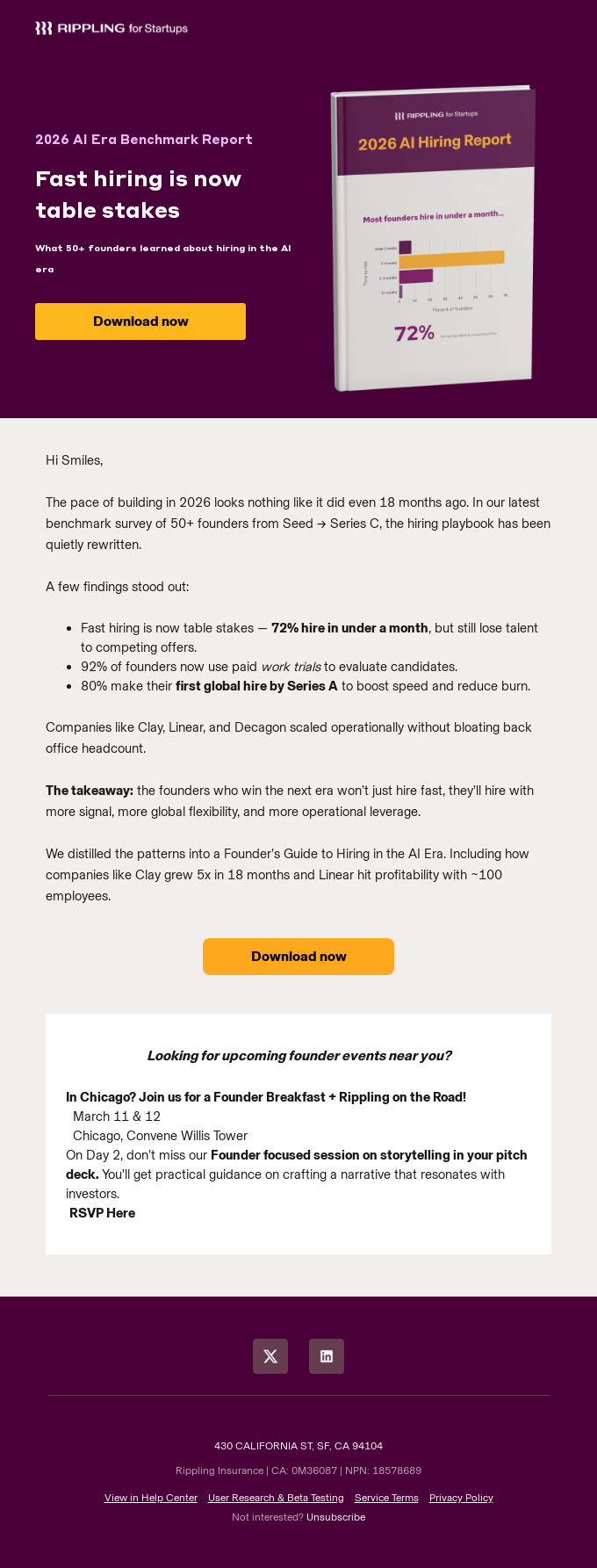 Swan Dive's welcome email showcases effective welcome design with clear messaging and strong visual hierarchy.