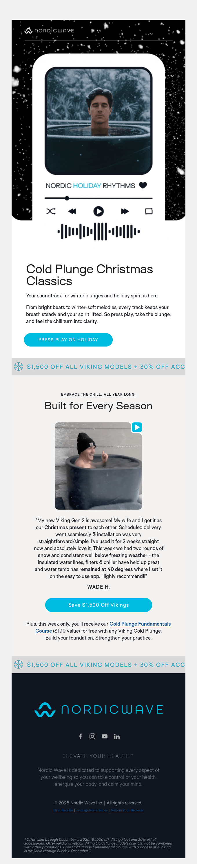 Nordicwave's promotional discount email showcases effective promotional discount design with clear messaging and strong visual hierarchy.