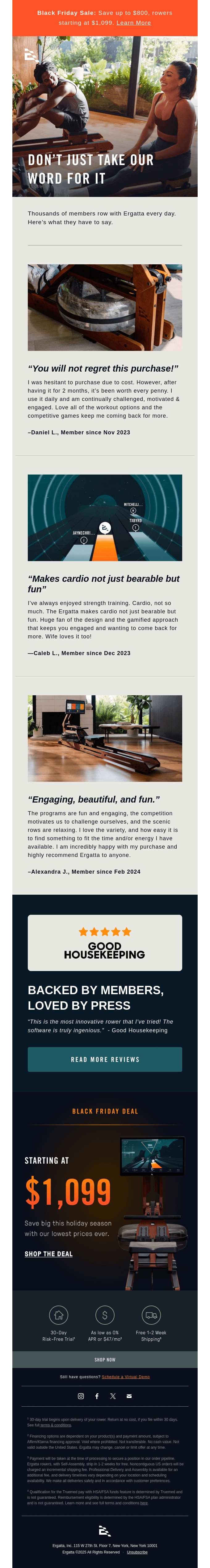 Ergatta's promotional discount email showcases effective promotional discount design with clear messaging and strong visual hierarchy.