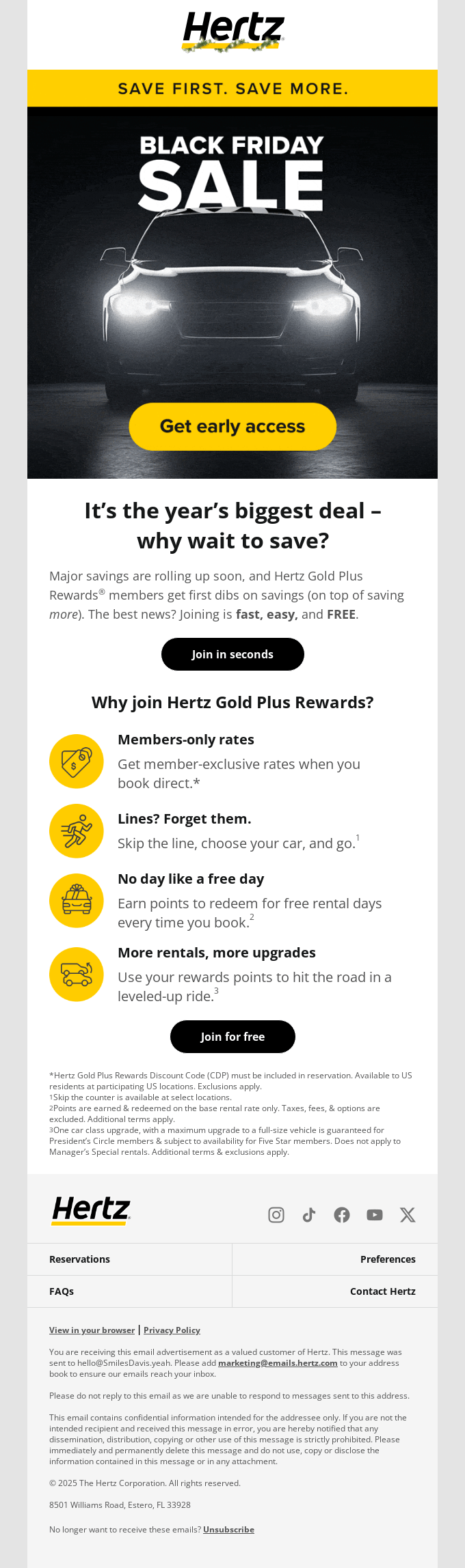 Hertz: 🤑 Smiles Davis: Join now for Black Friday early access!
