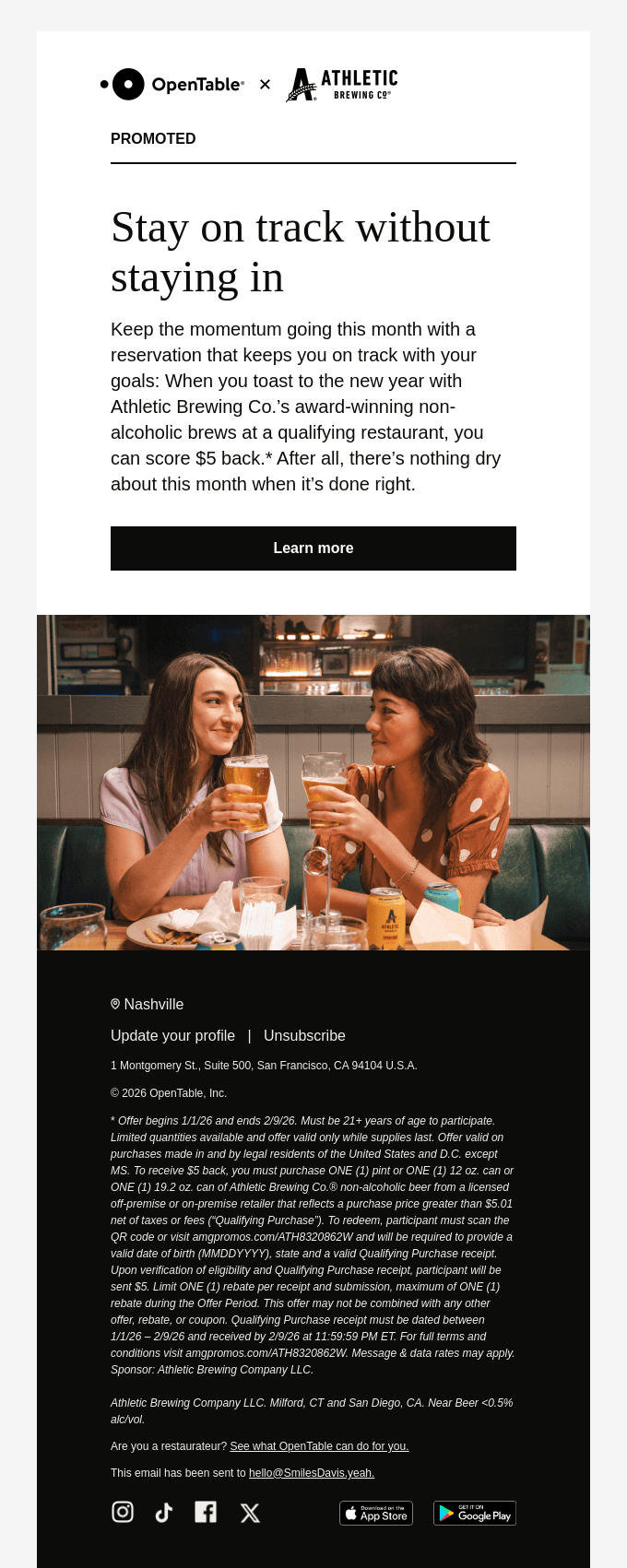 OpenTable's newsletter email showcases effective newsletter design with clear messaging and strong visual hierarchy.
