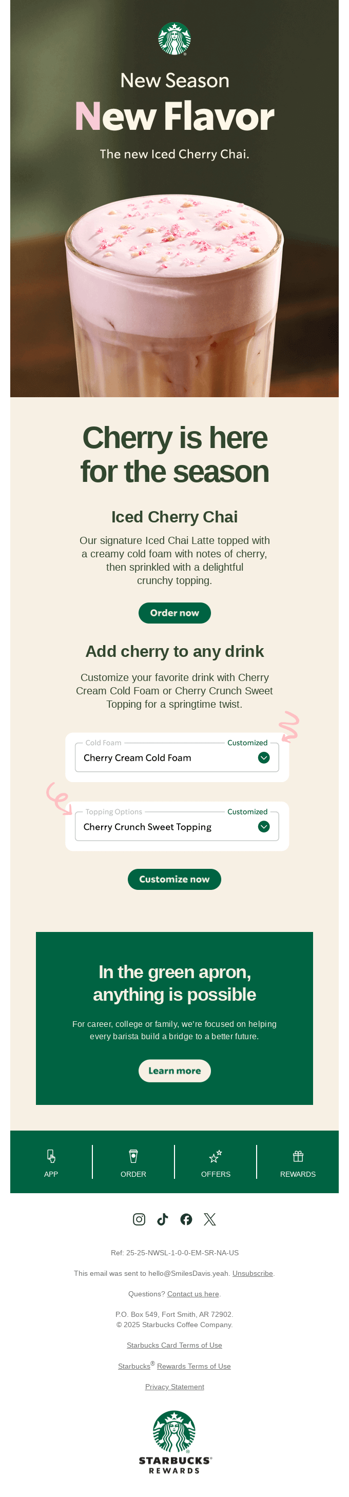 Keurig's product launch email showcases effective product launch design with clear messaging and strong visual hierarchy.