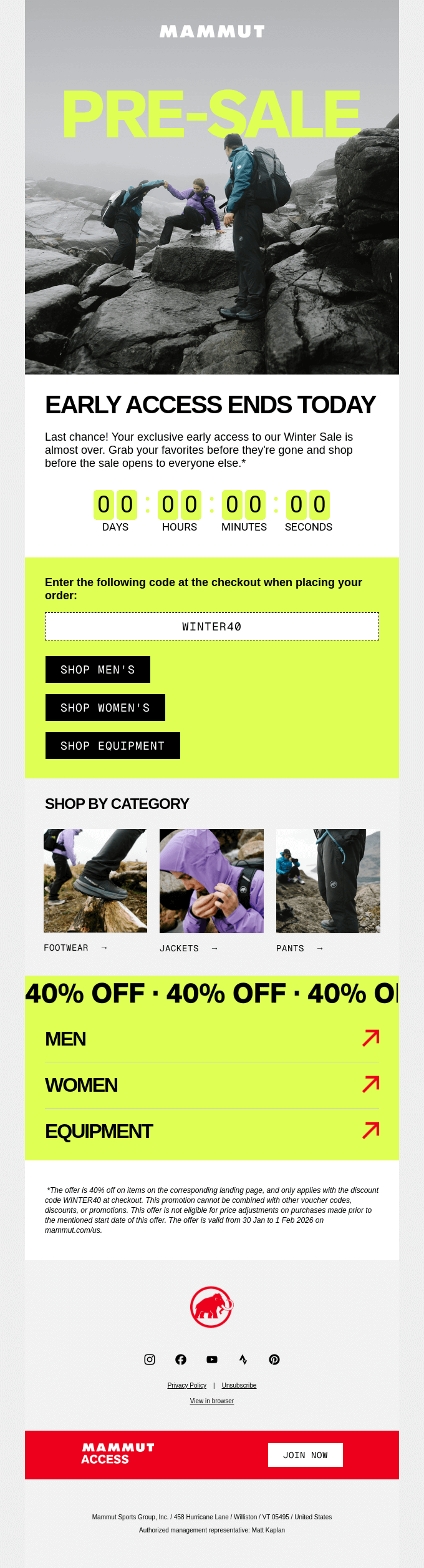 Mammut's promotional discount email showcases effective promotional discount design with clear messaging and strong visual hierarchy.